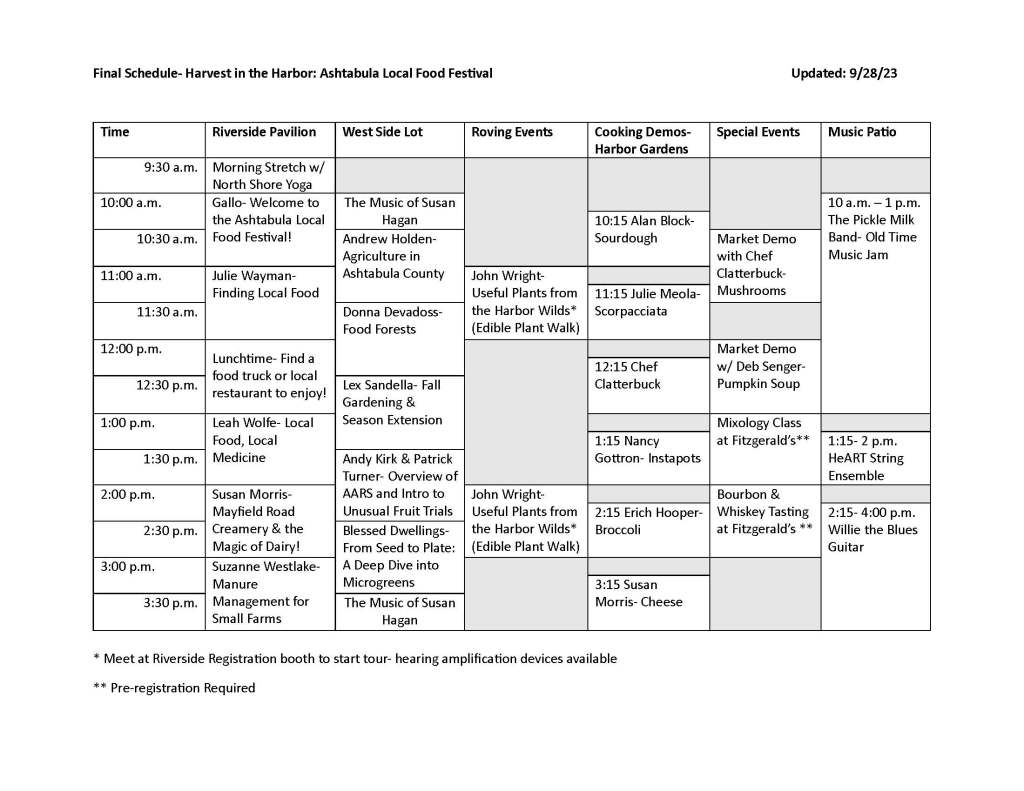 The Harvest in the Harbor/ Local Food Festival will be in the Historic Ashtabula Harbor on Sunday, October 8th, 2023 from 10-4 p.m
